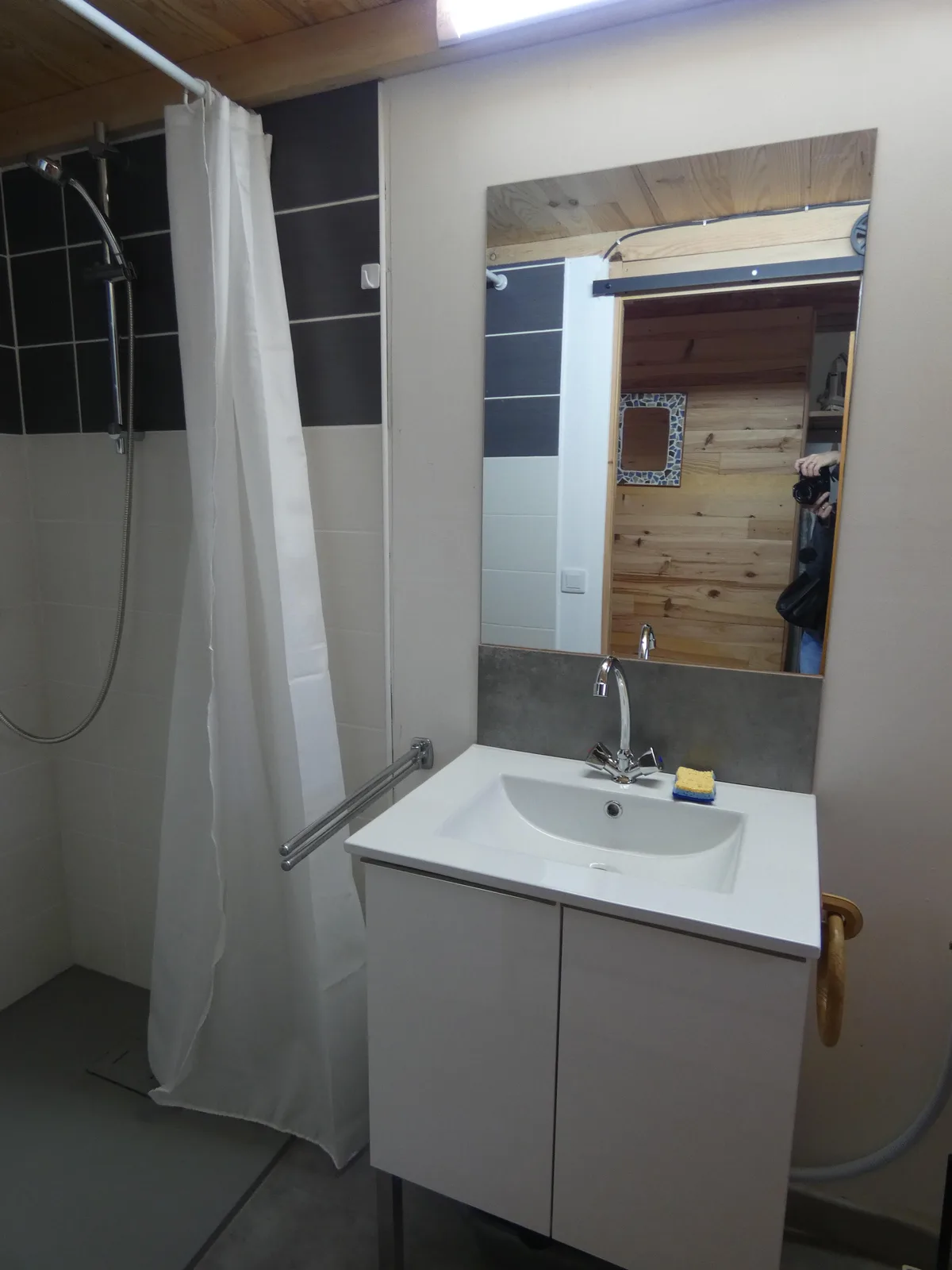 La cuisine ouverte est entièrement équipée pour préparer de bons petits plats, que l’on savoure face au paysage ou sur les chaises de terrasse. La chambre, intime et paisible, dispose d’un lit double confortable. La salle de bain attenante, simple et fonctionnelle, complète l’espace. À côté du gîte, une belle salle de 50 m² est également disponible, sur réservation, pour accueillir des stages bien-être, des retraites de yoga, des ateliers de danse ou des séminaires créatifs. L’ensemble du lieu a été pensé pour favoriser la reconnexion à soi, à la nature, au silence. Entourée de sentiers, au cœur du Parc naturel régional du Haut-Languedoc, le Balcon de la grange est un point de départ parfait pour randonner, se baigner, flâner sur les marchés ou visiter les villages alentours.