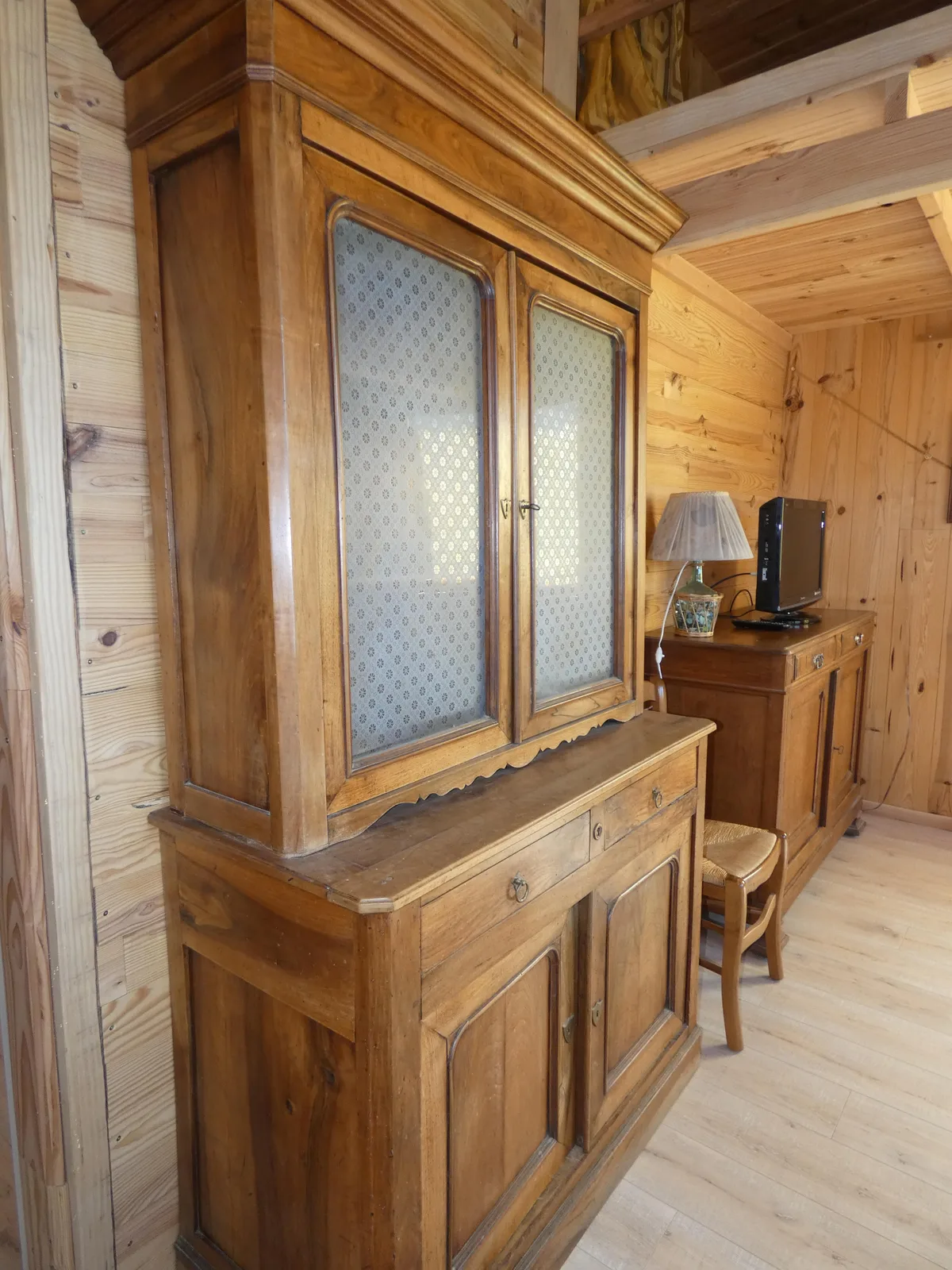 Dès l’entrée, on est enveloppé par la chaleur du bois omniprésent. La pièce principale s’ouvre sur un salon cosy avec canapé et coin repas, baigné de lumière grâce à une immense baie vitrée donnant accès au balcon suspendu. Ce dernier offre une vue imprenable sur la rivière Tarn et les collines verdoyantes : un véritable tableau vivant qui évolue au fil des heures.